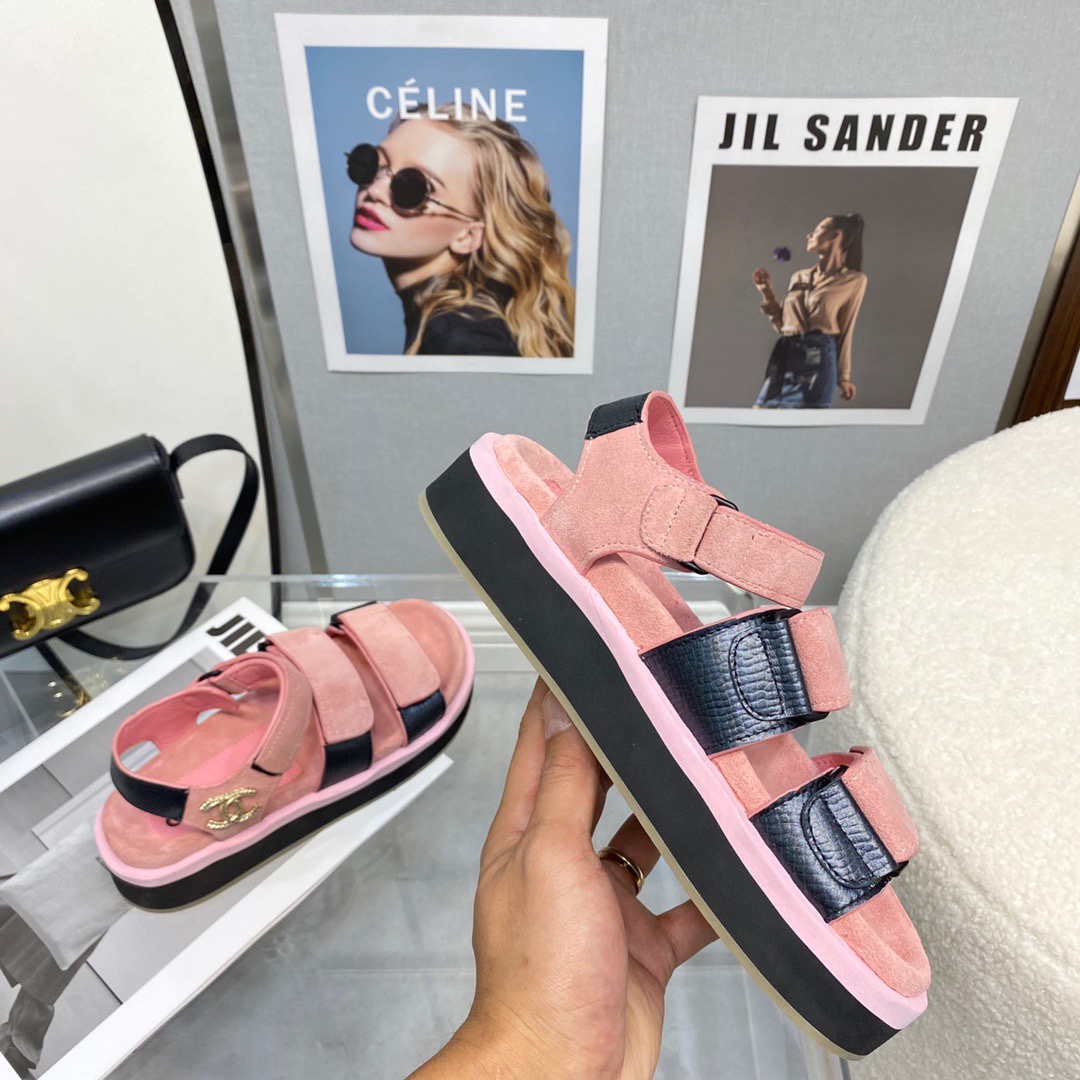 J0 Chanel 香奈儿 小香最新魔术贴设计 轻便发泡耐磨绒大底、更加彰显和品味~所有材质都根据原版定制购入正品开发。万能百搭神器,夏日沙滩🏖️耐造款。进口小羊皮、羊筋面料质感柔软细腻内里为进口羊皮🇮🇹原版开模耐磨绒大底