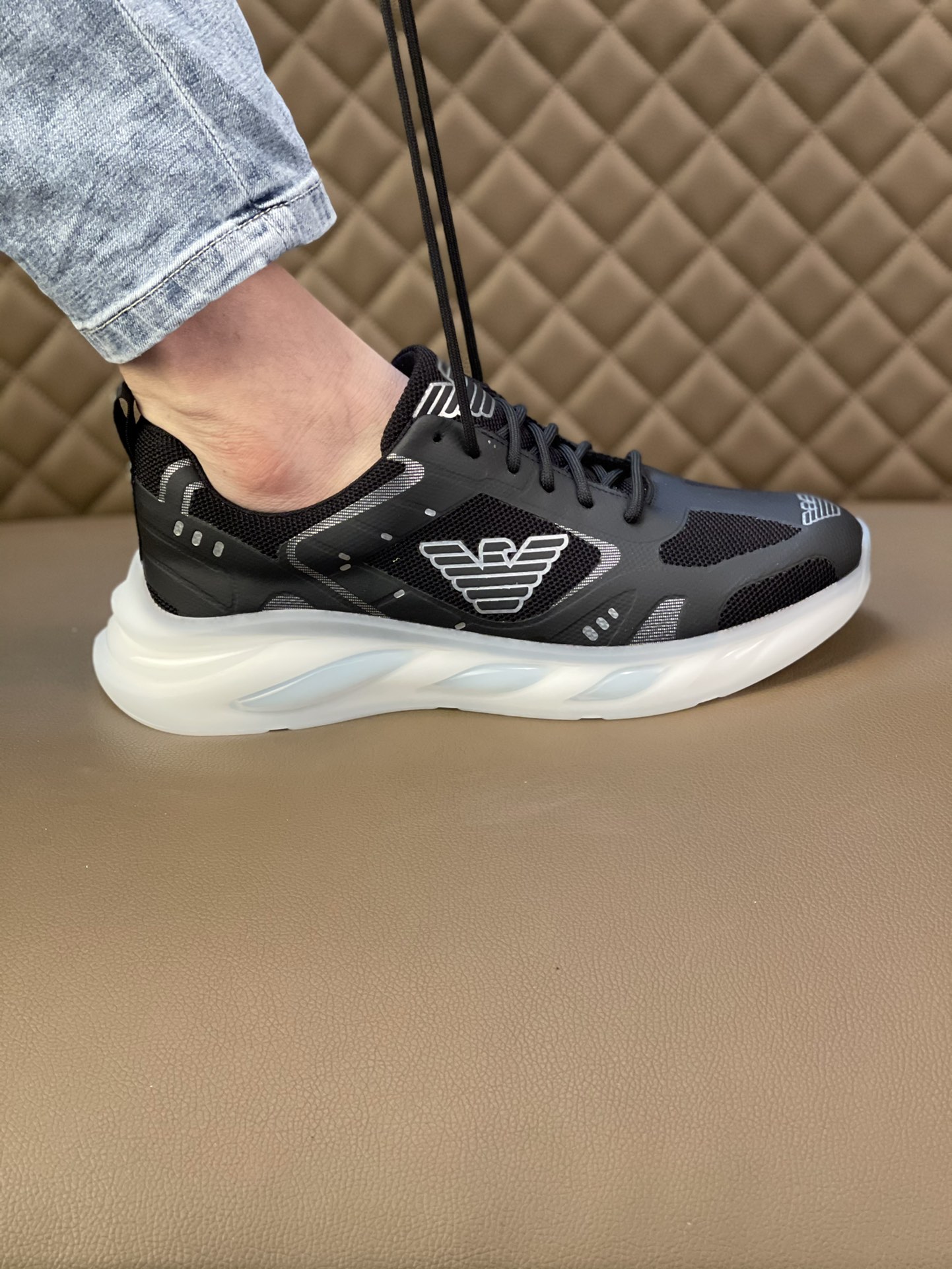 Armani I5 Armani 阿玛尼休闲系列 原版专柜潮鞋👟 鞋面意大利进口特殊材质➕原版面料,羊皮内里,潮男年轻人必备,欧美时尚风格,无论走到那你都是亮点。1:1复刻 运动风,原单阿玛尼印图 懒人套脚必备 原版运动底 精品打造 适合司机驾车出行🚗 ✨款式简单而不失奢华,百搭,让你走到那都是亮点,男鞋