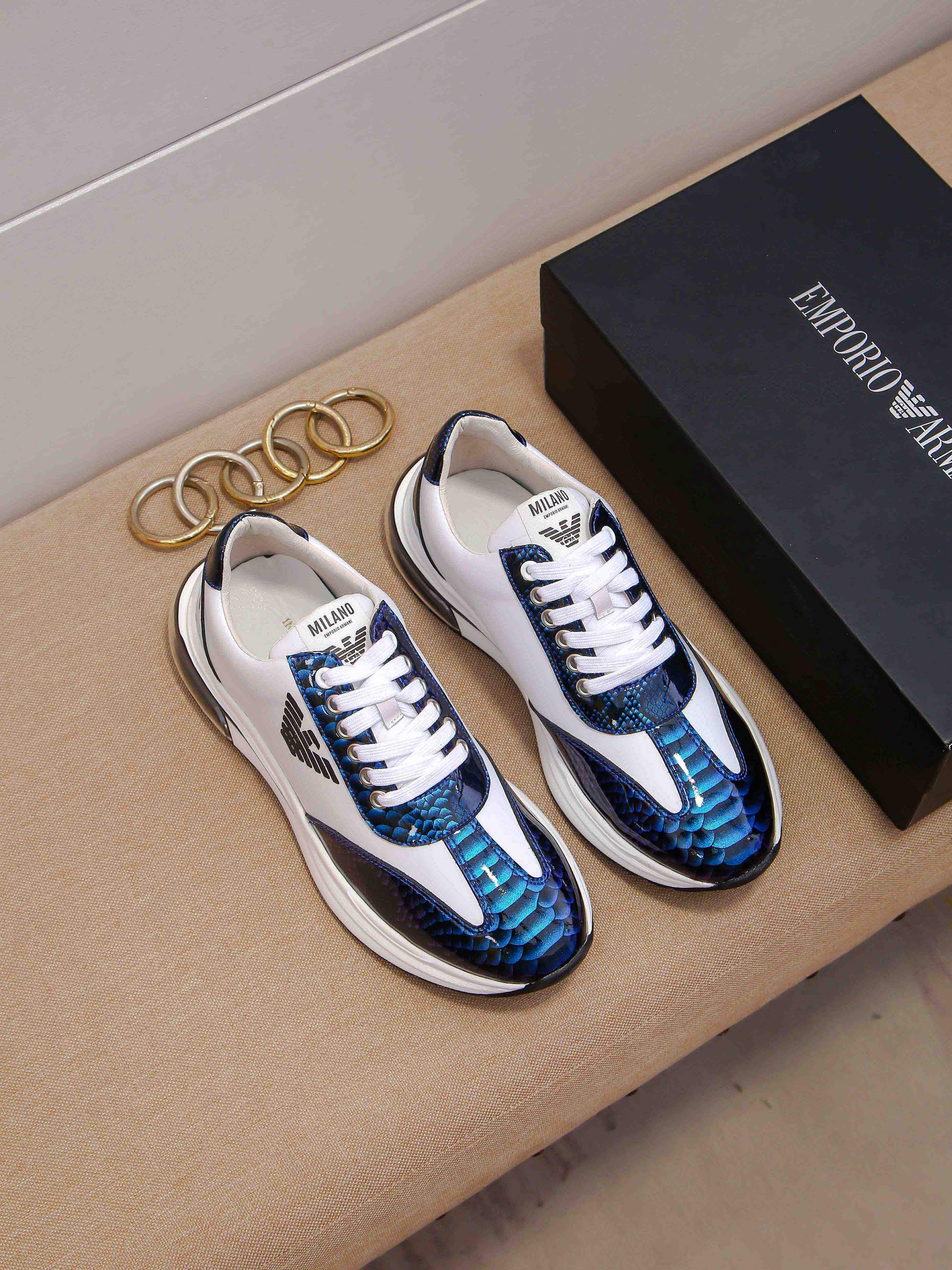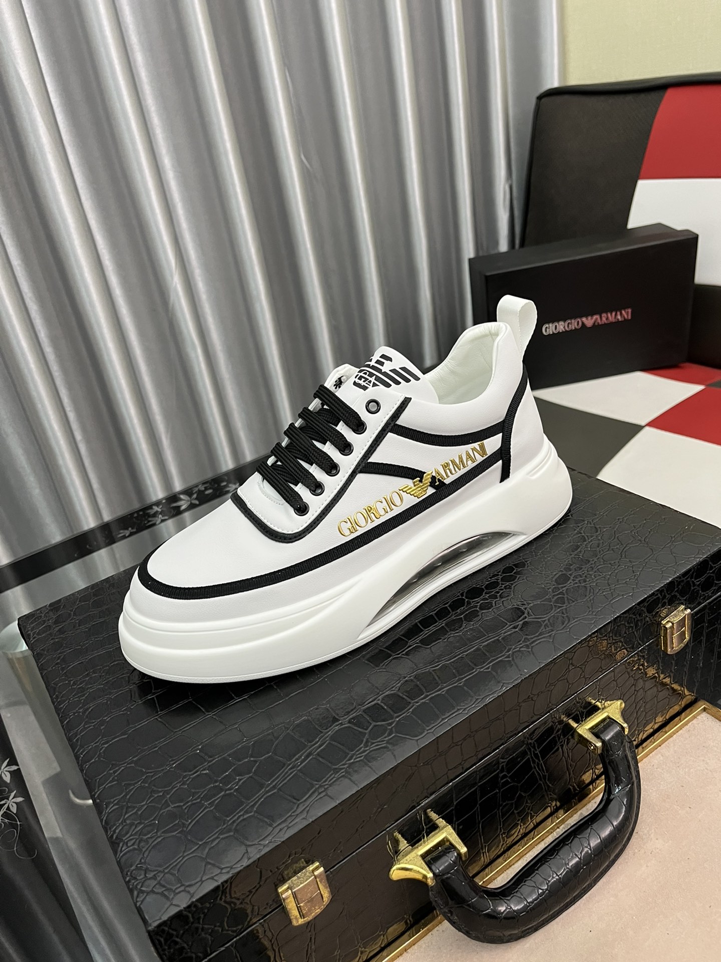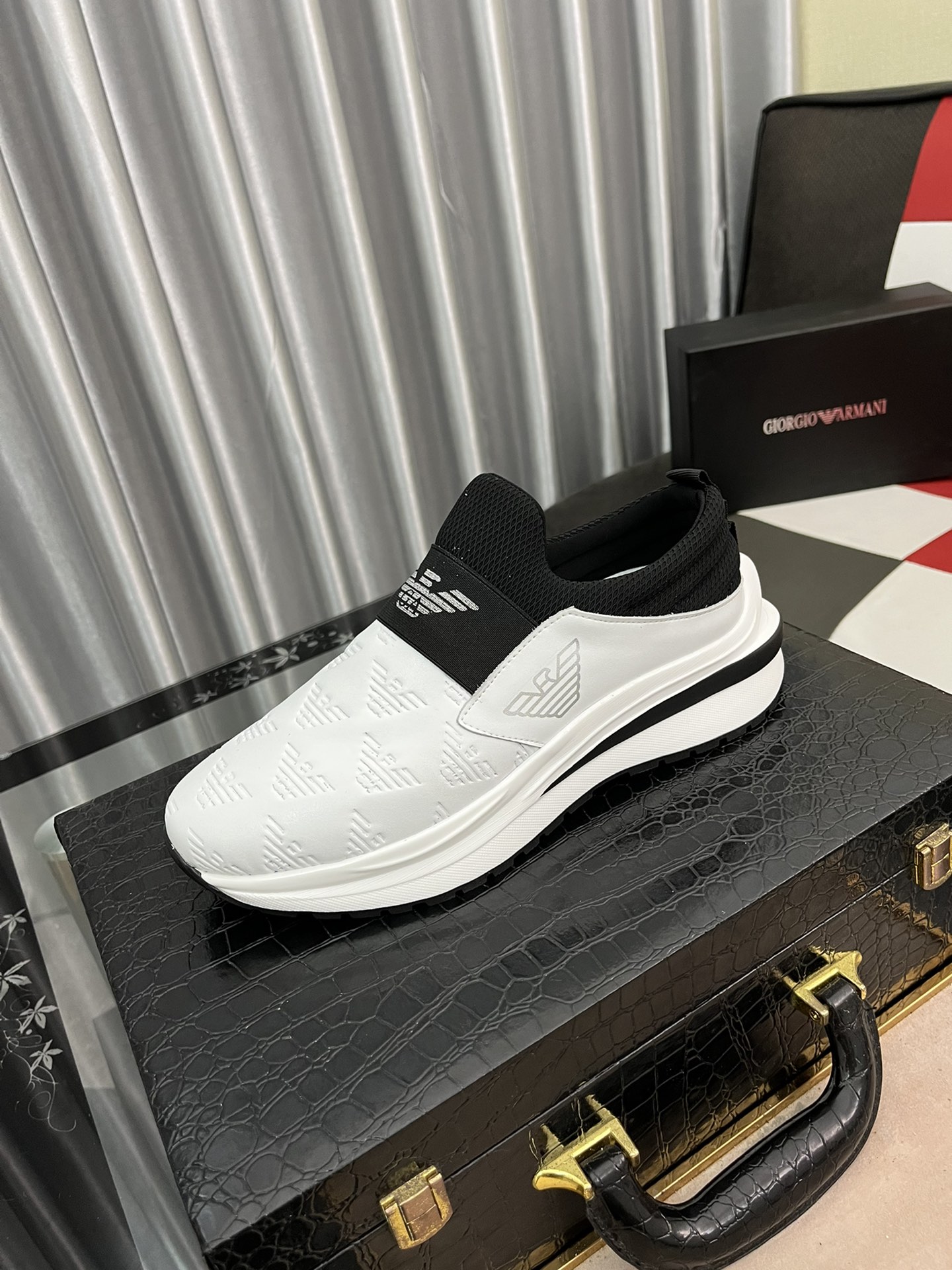Armani I0 Armani阿玛尼休闲鞋香港🆙顶级原单 经典回归 🎉 专柜验证 🆙保证品质🙏 进口意大利进口头层牛皮➕鞋口弹力布搭配🙏真皮垫脚。柔软防滑橡胶大底, 高品质打造👟 流畅的宣型 精细的做工 ,时尚又休闲,😍