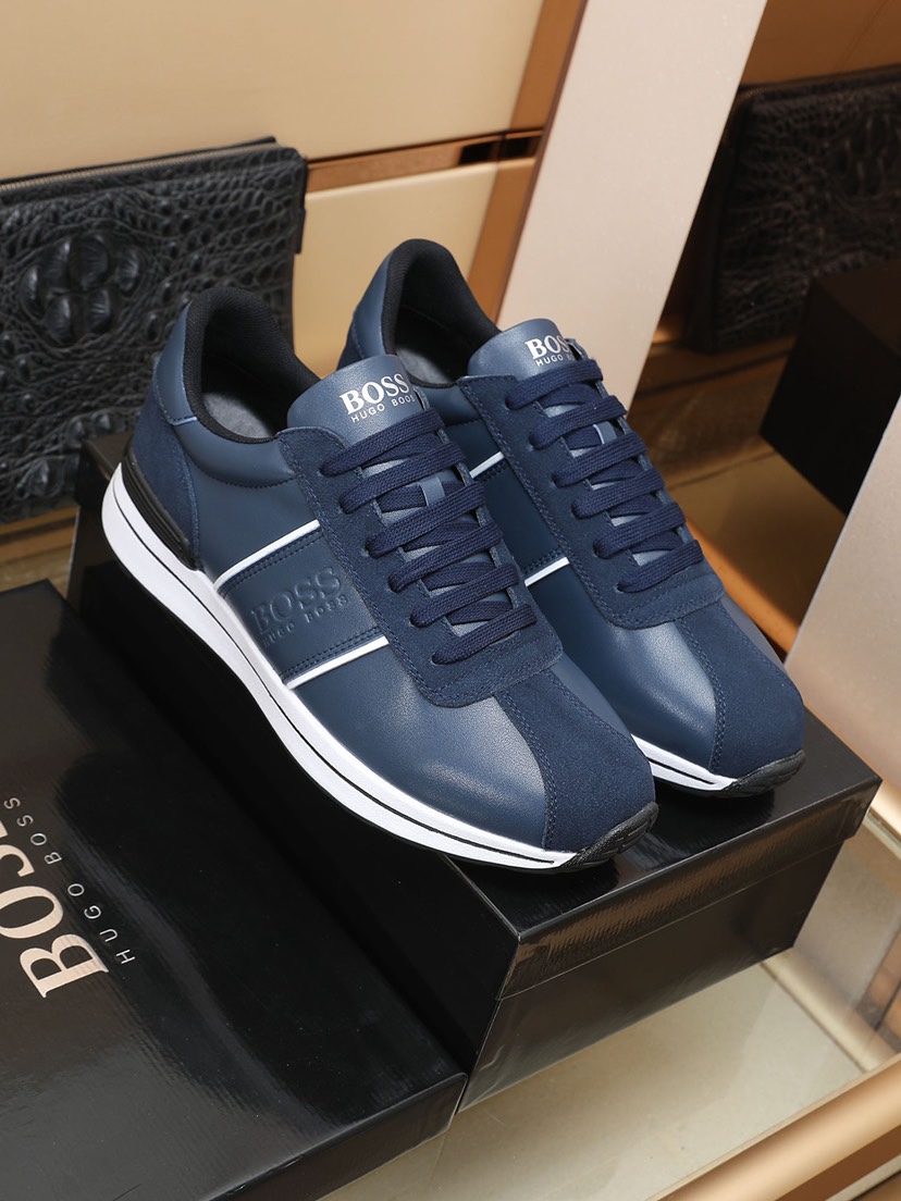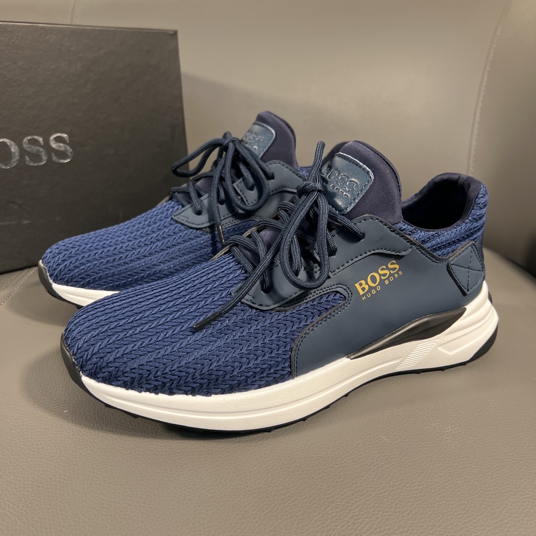 Boss I0 BOSS原版经典款休闲鞋 本款是官方主打经典款,1:1质量,原厂名师制作,采用原版透气飞织➕舒适羊皮垫脚。完美楦型,大方时尚的设计,吸引了众多消费者的追捧,适合司机驾车行驶🚗,要的就是市场最品质,颜色:黑 蓝 两色。
