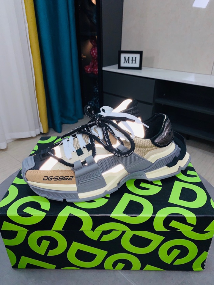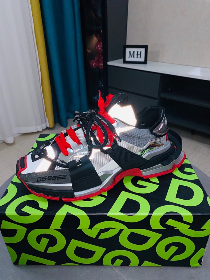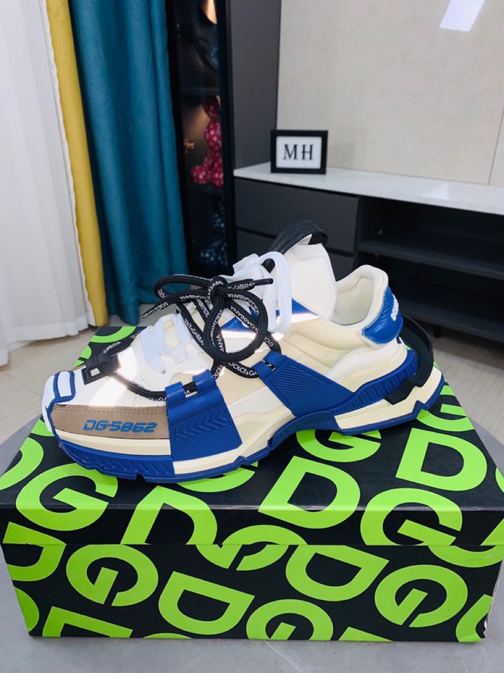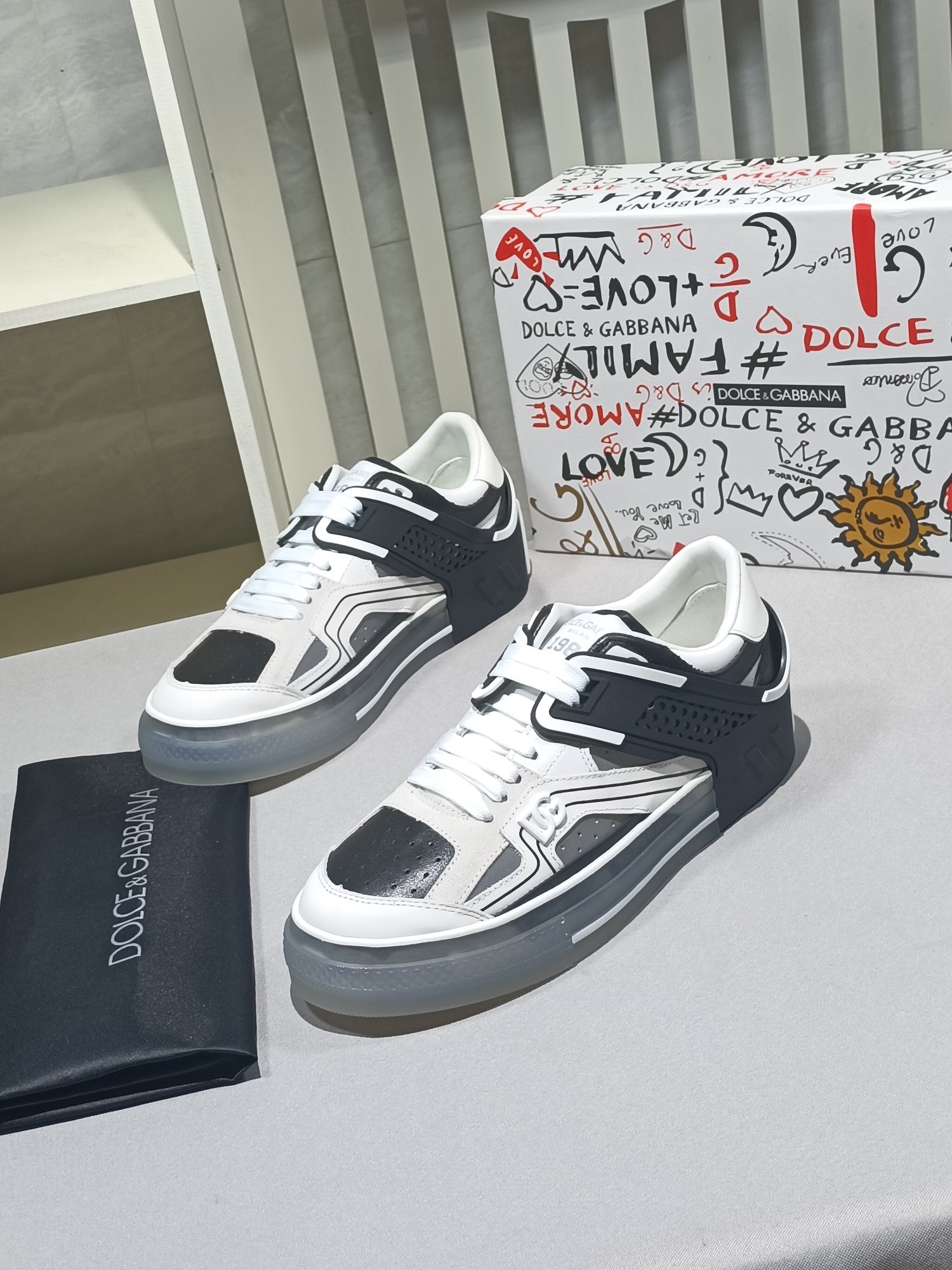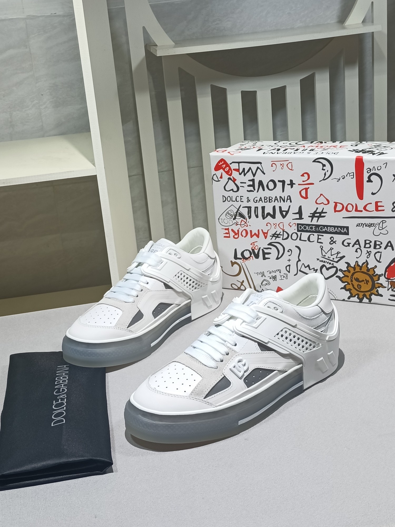Dolce & Gabbana J0 D&G 新品男士运动鞋 Custom 2.Zero 运动鞋全新版本,搭配透明橡胶鞋底与全新超大徽标尾翼,Dolce&Gabbana立体浮雕logo置于后尾 侧面镂花橡胶细节别具匠心。色彩搭配撞色抢眼吸睛• 多种材质拼接撞色设计 • 进口丝绸牛皮拼接反毛皮• 侧面 Dolce&Gabbana 徽标小牛皮鞋面 • 扁平系带 加入反光材质 • 徽标TPU橡胶鞋底•标准皮鞋