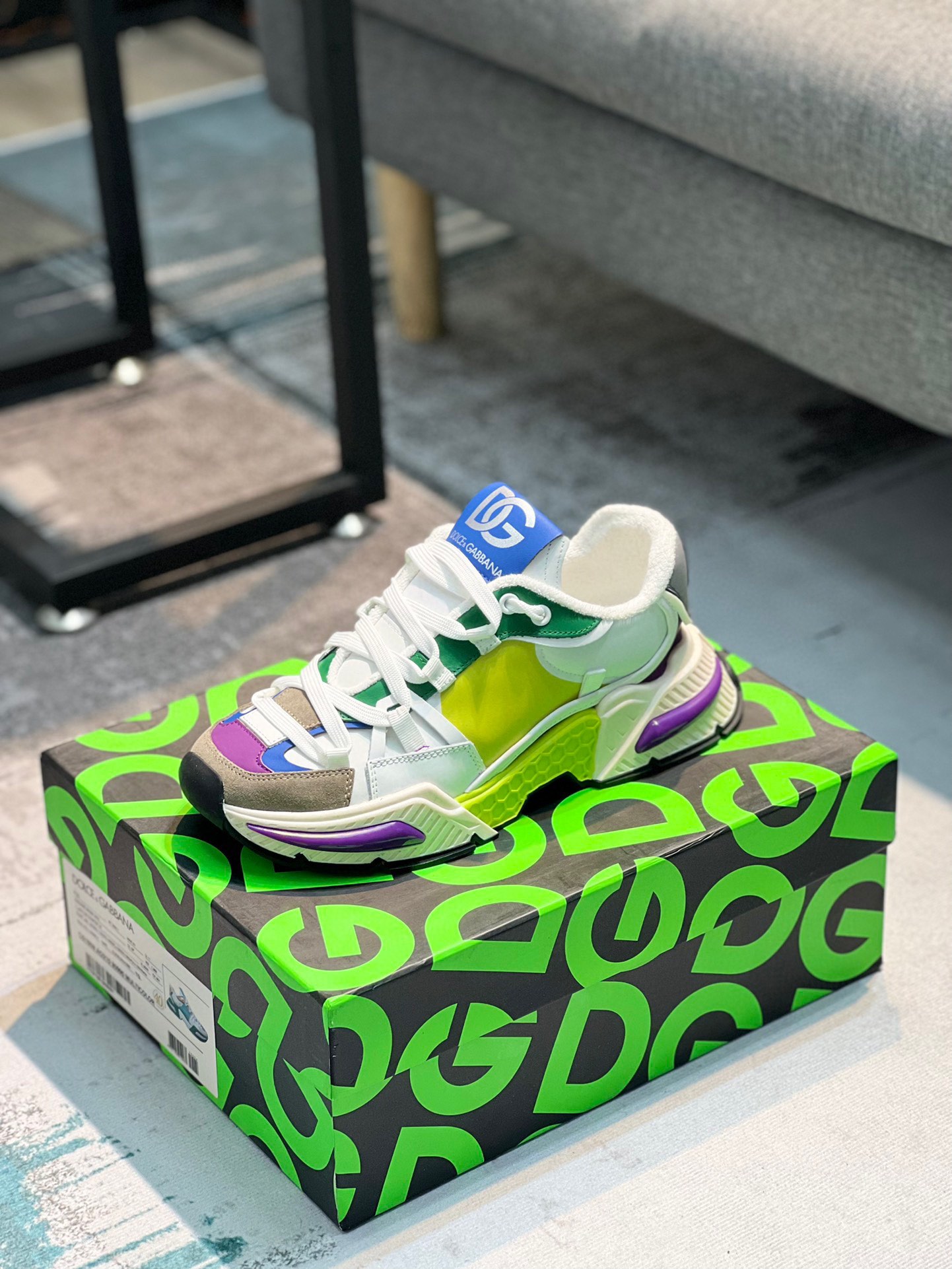 Dolce & Gabbana J0 D&G 新品男士运动鞋 Custom 2.Zero 运动鞋全新版本,搭配透明橡胶鞋底与全新超大徽标尾翼,Dolce&Gabbana立体浮雕logo置于后尾 侧面镂花橡胶细节别具匠心。色彩搭配撞色抢眼吸睛• 多种材质拼接撞色设计 • 进口丝绸牛皮拼接反毛皮• 侧面 Dolce&Gabbana 徽标小牛皮鞋面 • 扁平系带 加入反光材质 • 徽标TPU橡胶鞋底•标准皮鞋