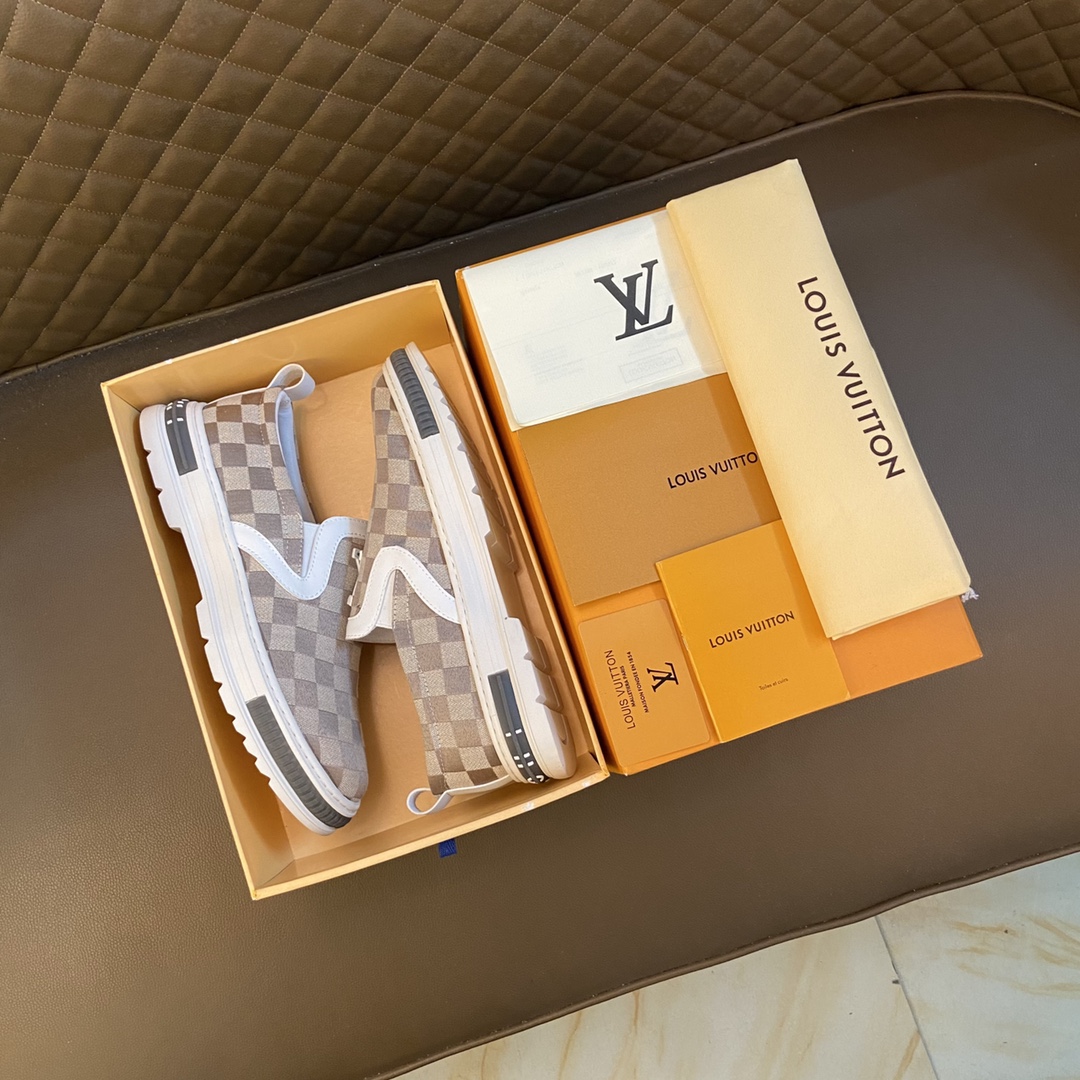 Louis Vuitton I5 LOUlS VUlTTON路易威登~独特现风运动鞋。Louis Vuitton专柜代购🏃休闲鞋😍😍 男士2022专柜同步发售,意大利进口原版品牌精选头层柔软牛皮。 🐑羊皮内里 拒绝脱色磨脚鞋底:原厂特供原版底,。法国懒人风格设计 ⚠️套脚 贴原单品质 超舒服原版底 。就好像实物拍摄🎬实物更赞 适合户外司机驾车完美🚗 高品质板鞋,男装男鞋