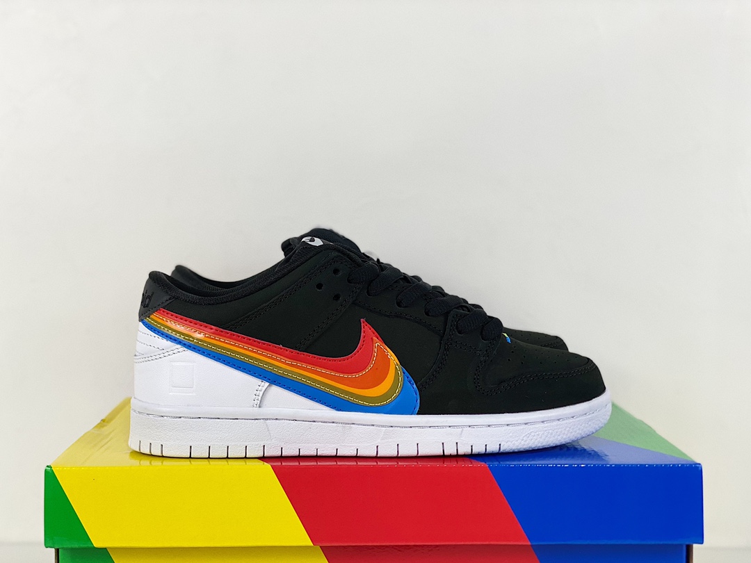 Nike Nike SB Dunk Low I5 ,主推私公司级 Polaroid x NK SB Dunk Low”Polaroid” 宝丽来联名 黑白彩三色重叠钩子黑色牛巴革鞋面质感不俗,白色后跟和鞋底与鞋身形成对比。侧身三个重叠Swoosh设计相当吸睛,辅以红黄蓝三色点缀,其中黄色部分还采用透明材质呈现,代表宝丽来光学厂商的元素。鞋头彩虹刺绣与彩虹印花鞋垫相呼应,非常亮眼。后跟“Polaroid”刺绣字样,彰显特殊联名身份。货号:DH7722-001尺码:36 36.5 37.5 38 38.5 39 40 40.5 41 42 42.5 43 44 44.5 45 46 47.5编码:A-C76943