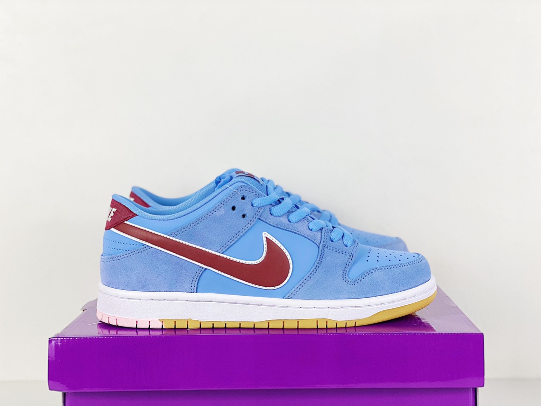 Nike Nike SB Dunk Low I5 ,主推私公司级Nk SB Dunk Low “Phillies” 泡泡糖该鞋款灵感来源于MLB费城费城人队的 F5 年代队服,鞋身整体以麂皮材质打造,配色方面以大面积蓝色为主色调呈现,十分亮眼货号:DQ4040- K0 尺码 :36-45