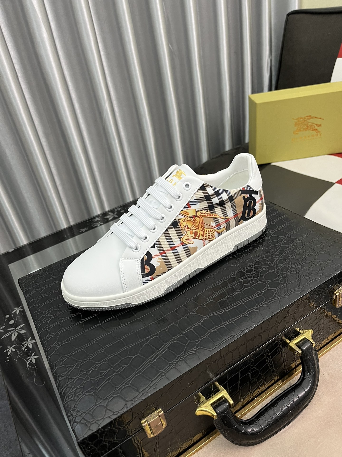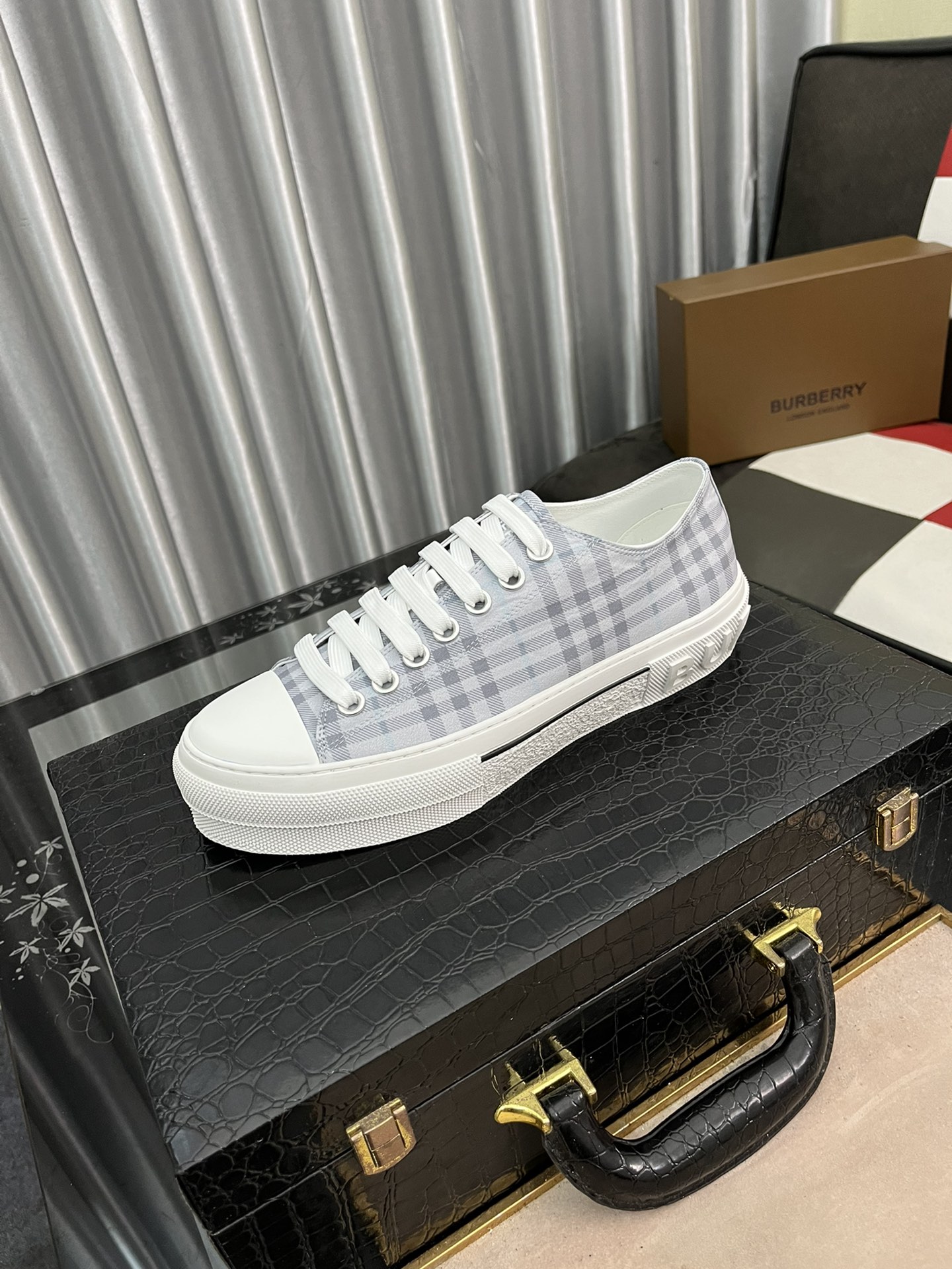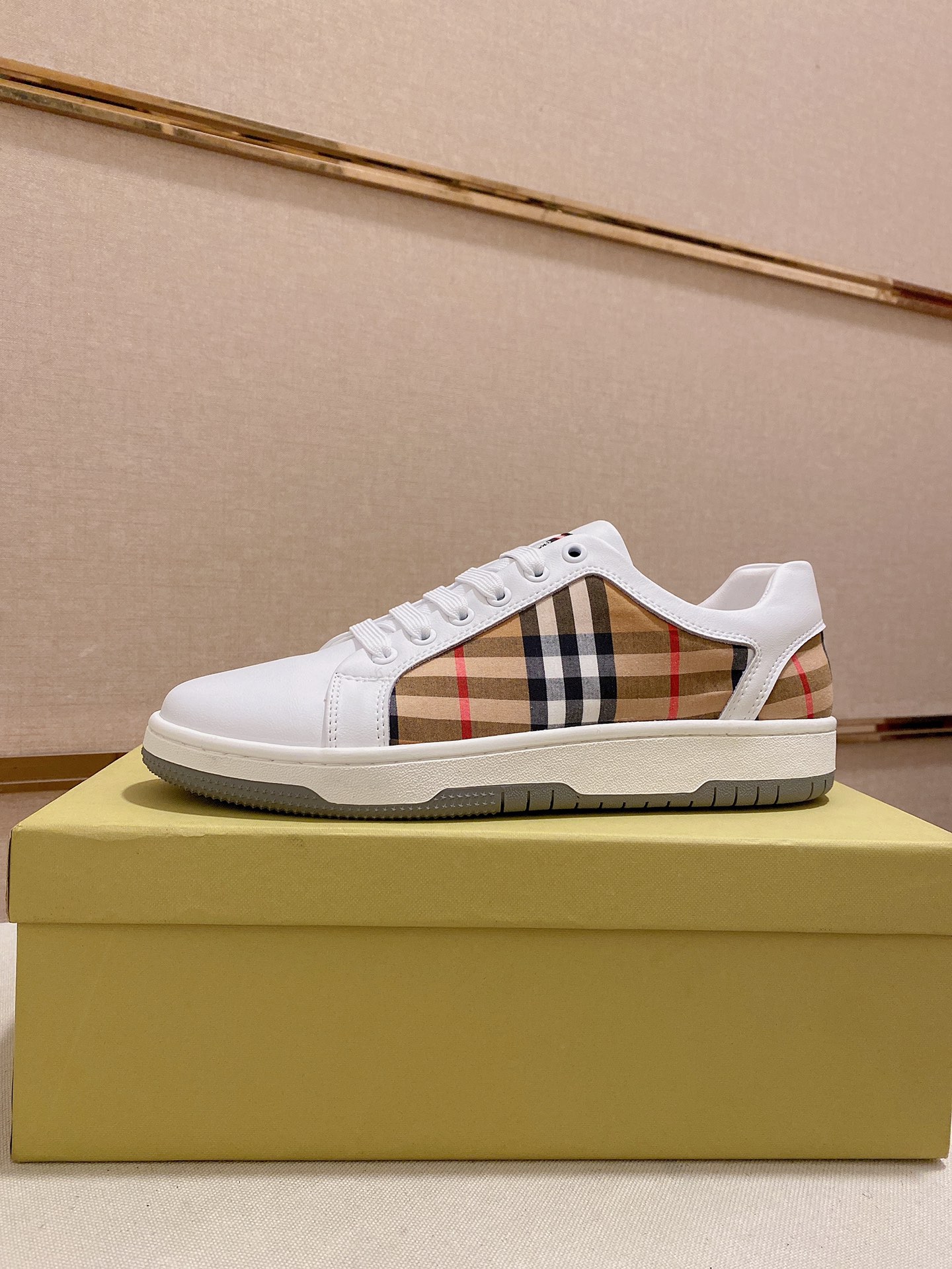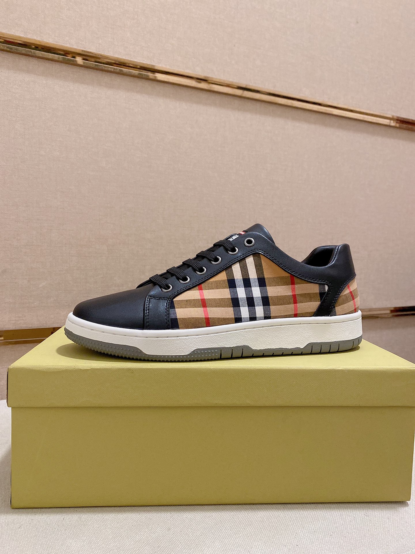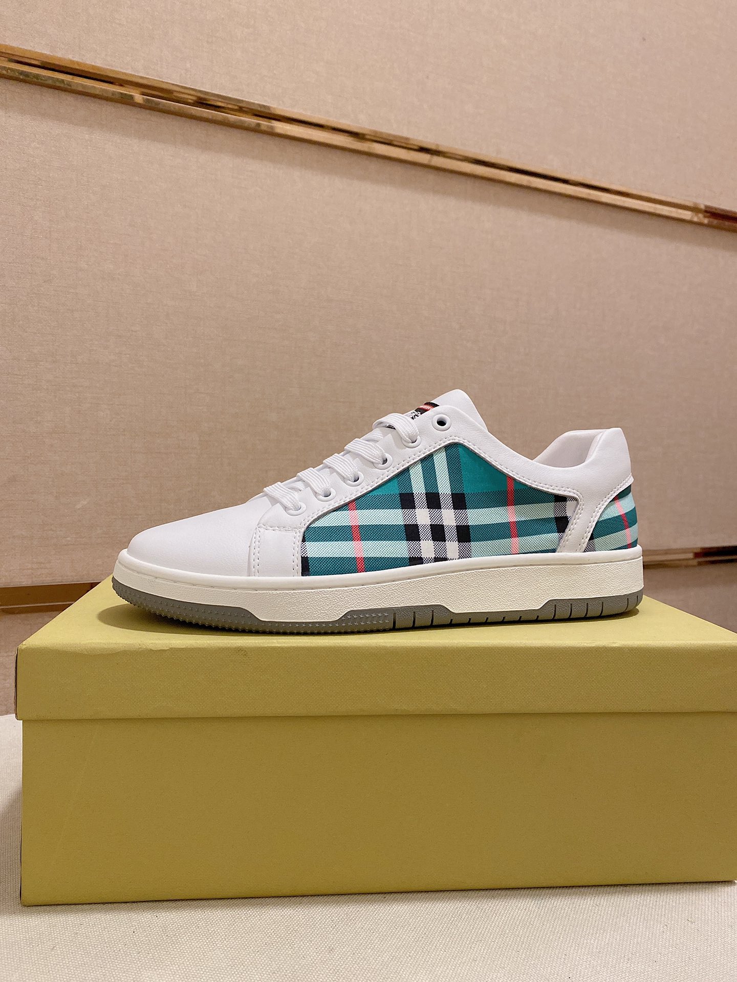 Burberry J0 顶级版本 2022 Burberry 巴宝莉 家男士经典低帮运动鞋,以 Vintage 复古格纹棉材质搭配小牛皮焕新演绎,装饰焕新的品牌徽标。头层牛皮内里,鞋跟饰有 Burberry 字母压花徽标,TPU原版大底