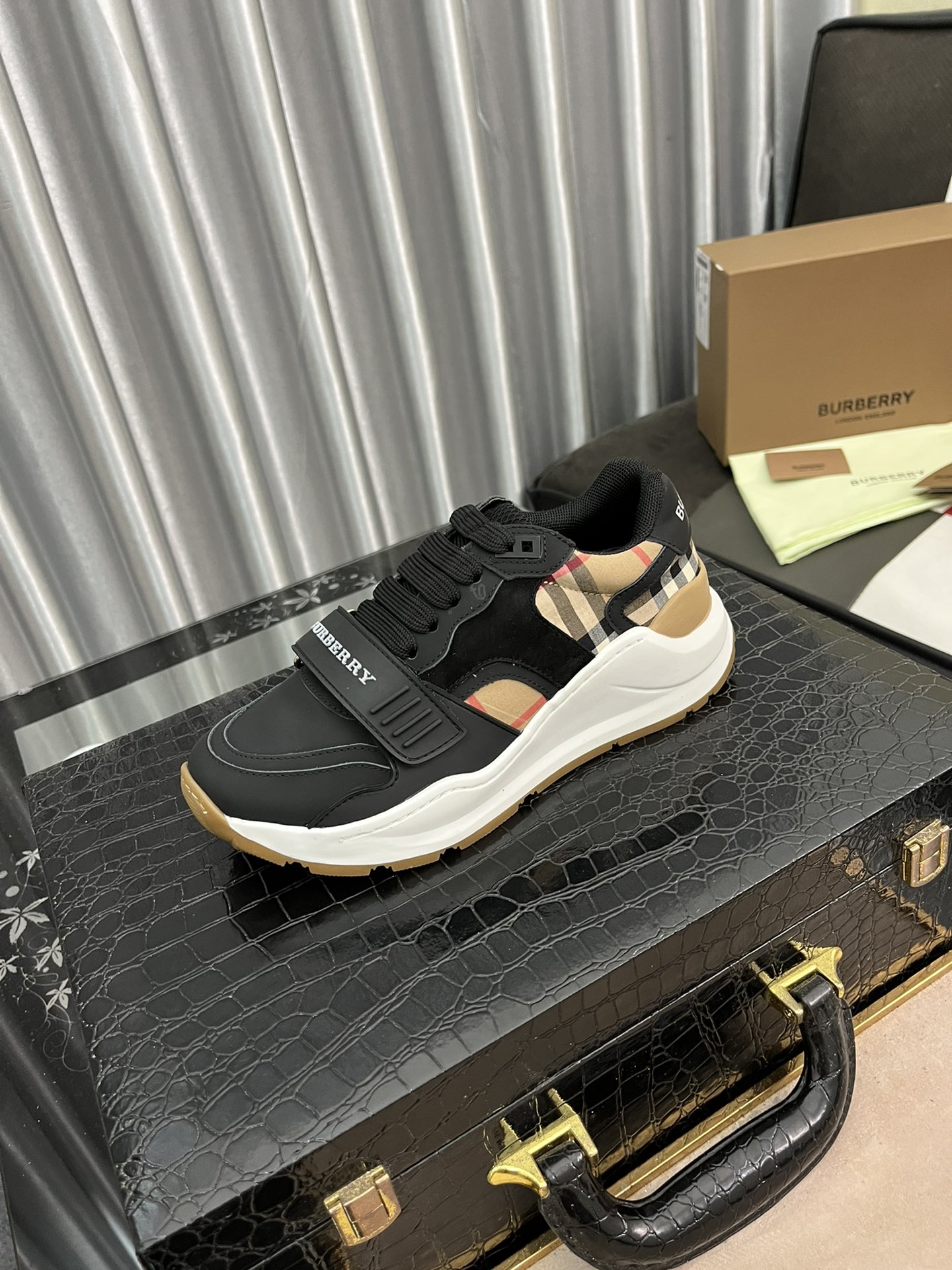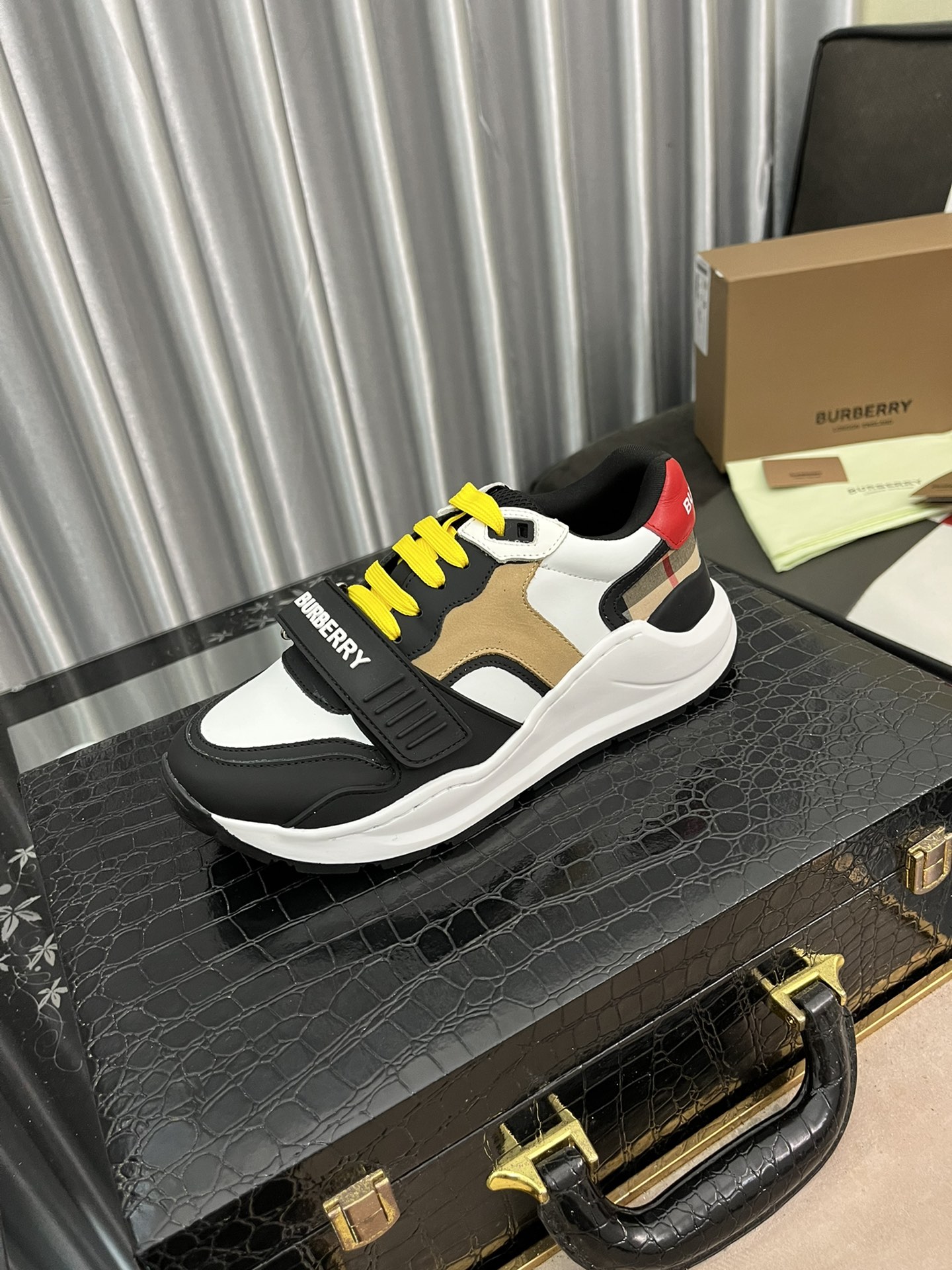 Burberry K5 情侣款高版本BURBERRY. Burberry 巴宝莉 老爹鞋爆款热卖 鞋面料布比第一代彩虹布要细腻很多。自带增内高2CM.Vintage 复古格纹动运鞋,灵感源自品牌装时秀,采用厚设底计。鞋面: 100%棉内衬: 100%棉,40%绵羊皮鞋底:高度5CM系带与尼搭龙扣正与面鞋跟饰有 Burberry 字压母花徽标男码35-443⃣️色可选