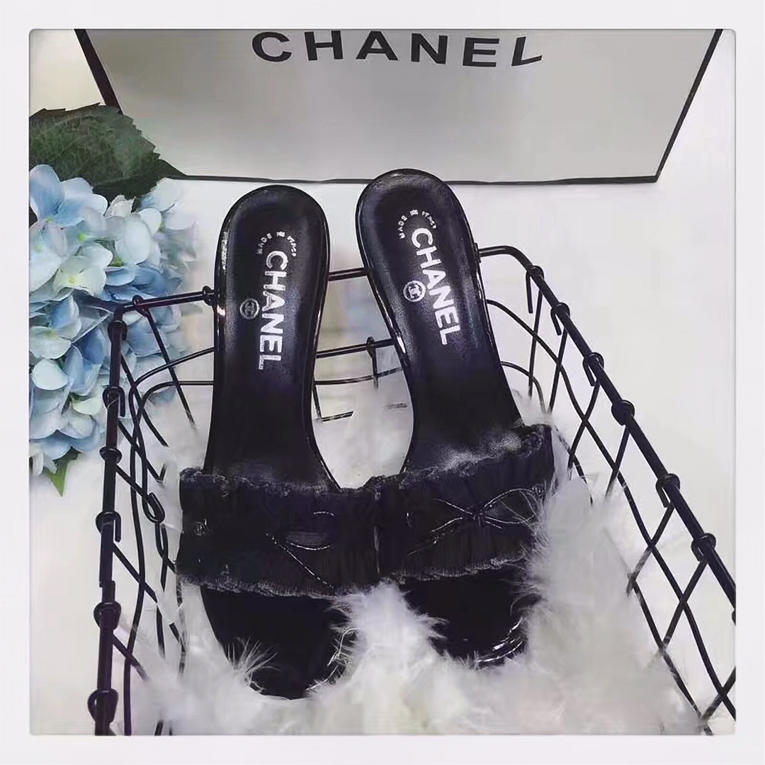 Chanel I0 、 Chanel 香奈儿凉拖鞋 鞋面压花蕾丝配精致蝴蝶结开模鞋跟羊皮内里 垫脚进口山羊皮 ,女人味十足鞋城订单款,做工精细橡胶底34-39,以出货,欢迎拿版实体进货2种跟高一个7CM、一个5CM