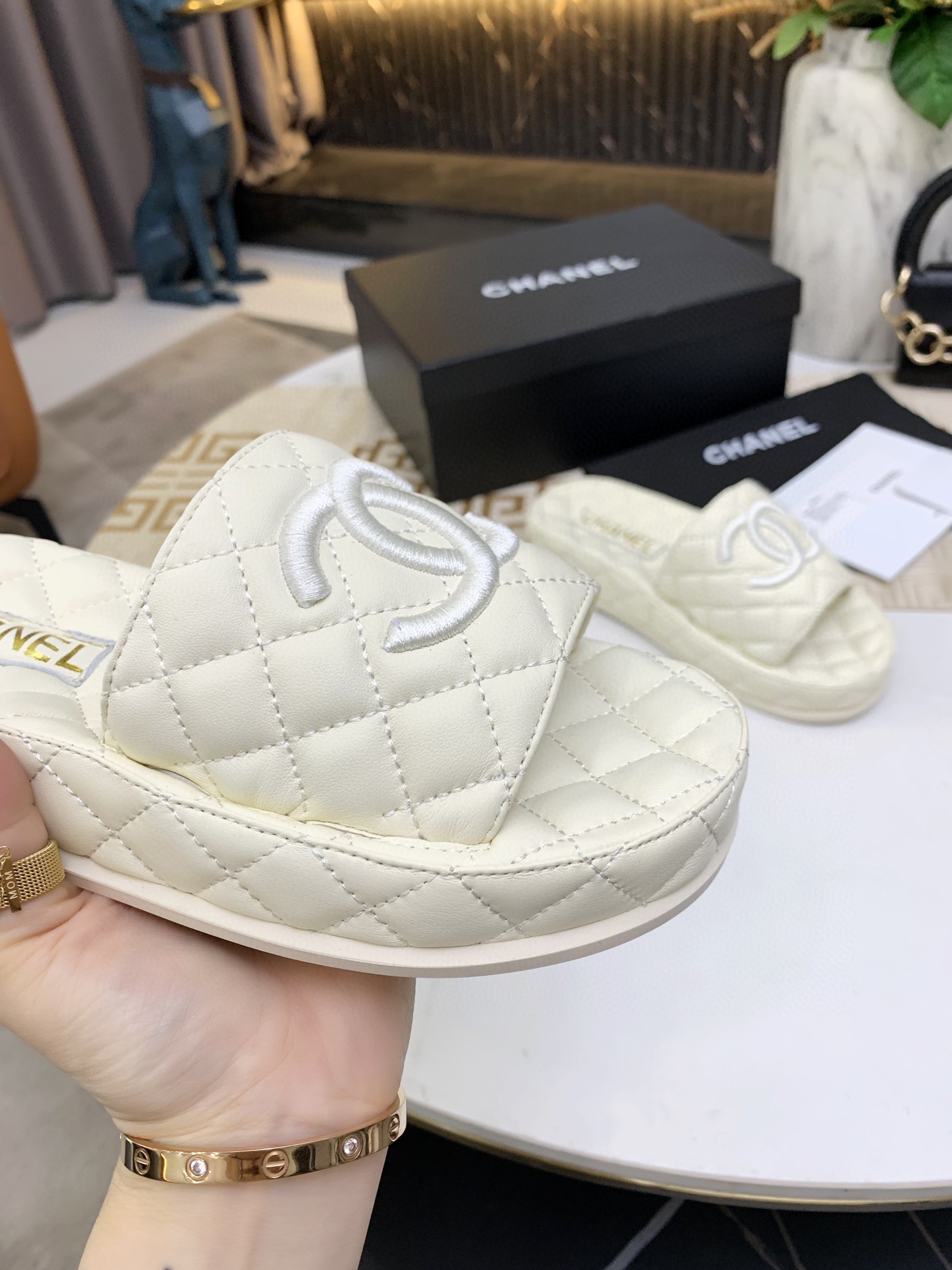 Chanel J0 Chanel 香奈儿 2022春夏拖鞋的也是超级美的,大家都很疯狂的囤货,都抢疯了,真的很长草,悠然闲适的魅力,闭眼入系列购入正品原版build。材质1️⃣鞋面采用进口羊绒手工编织 十分舒适2️⃣水染羊皮内里和垫脚