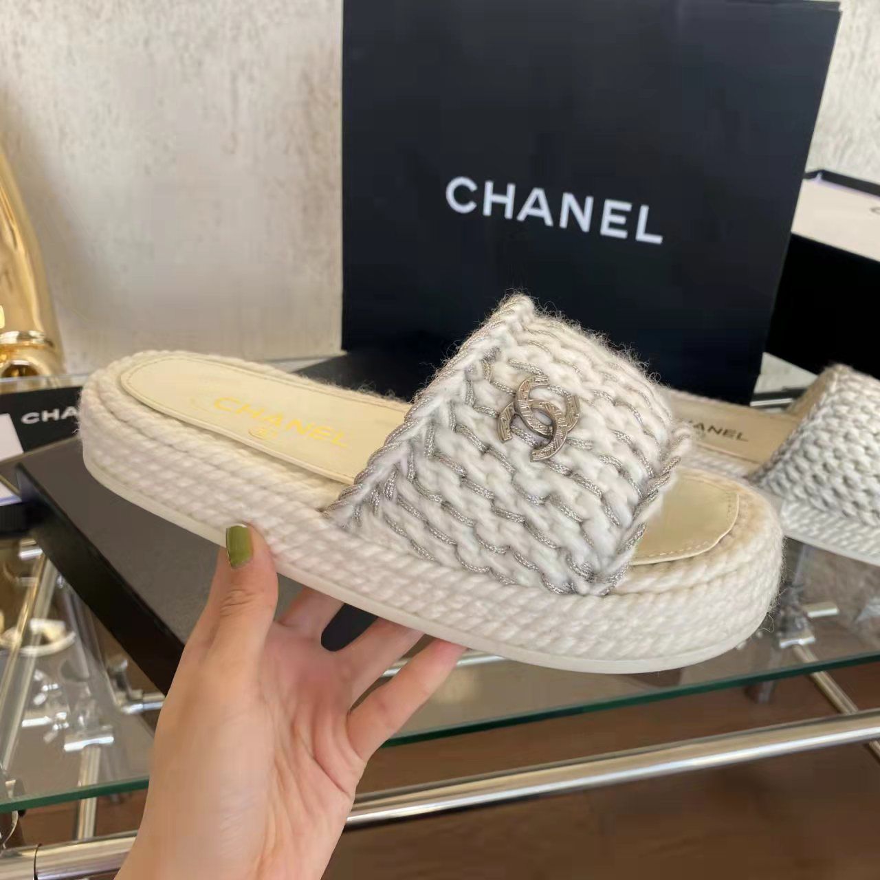 Chanel J0 Chanel 香奈儿2022春夏拖鞋的也是超级美的,大家都很疯狂的囤货,都抢疯了,真的很长草,悠然闲适的魅力,闭眼入系列购入正品原版build。材质1️⃣鞋面采用进口羊绒手工编织 十分舒适2️⃣水染羊皮里和垫脚