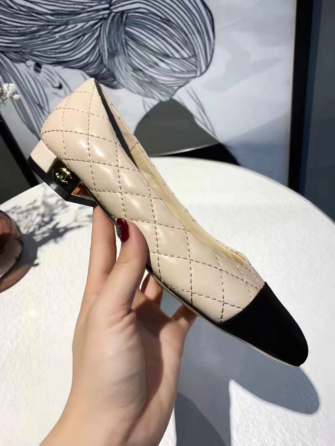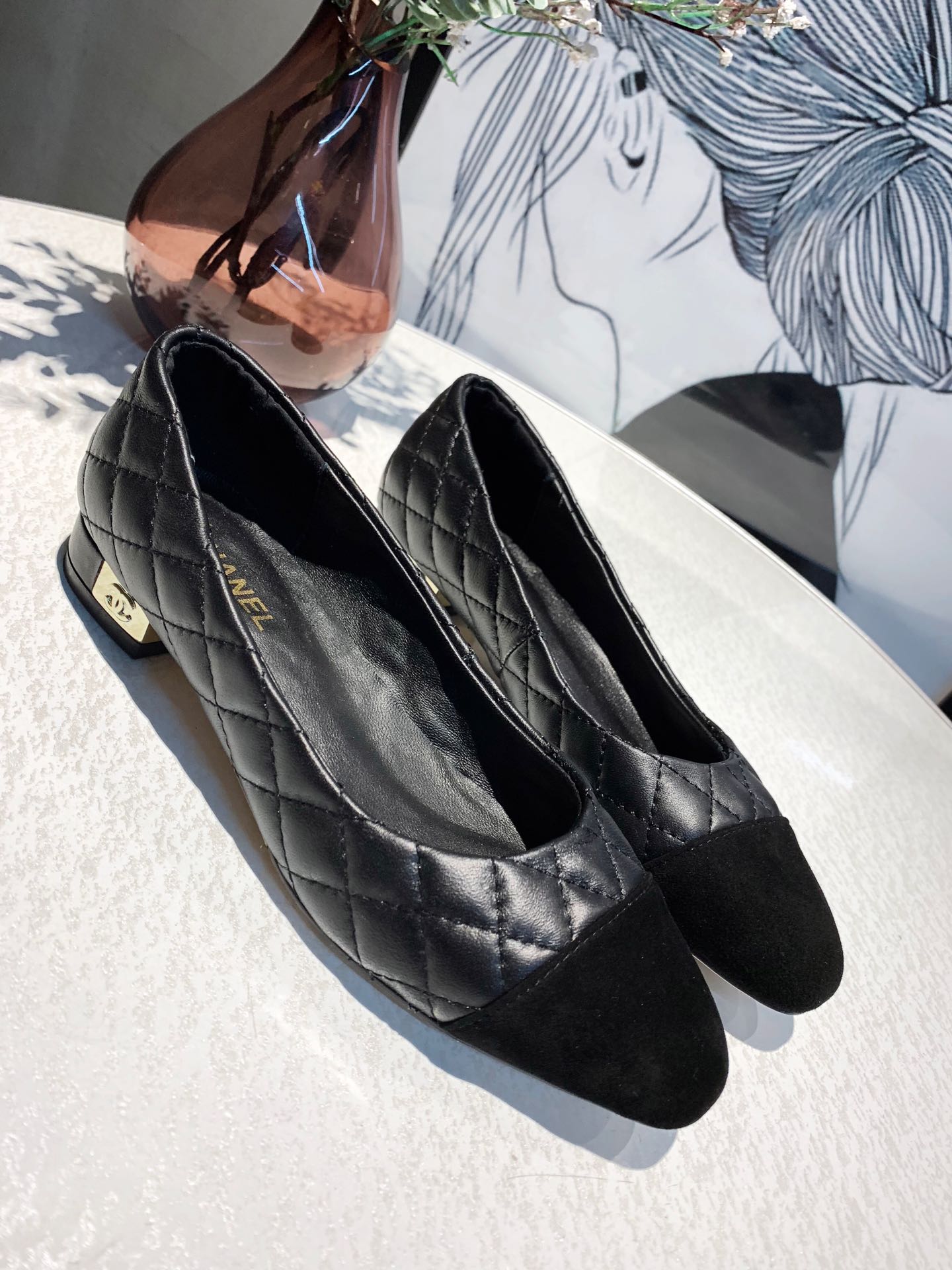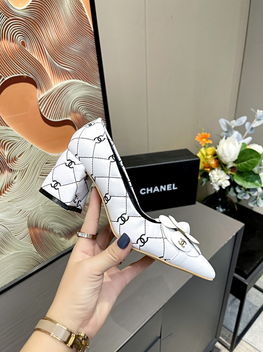 Chanel I0 Chanel 香奈儿开春CHANE小香家山茶花小方头拼色双C电绣单鞋,经典独特的山茶花,时尚够潮有气质,真正的一款美鞋,粗跟主要是走路平稳不累脚跟高6.5cm⚠面料:小牛皮,羊皮里,牛皮垫脚,