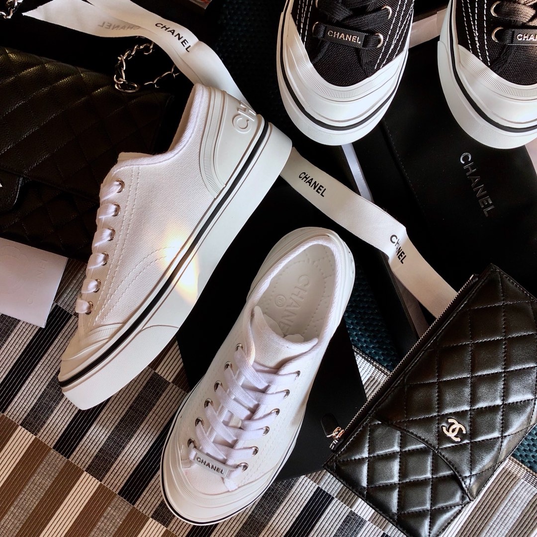 Chanel I5 香奈儿 最火爆的 Chanel 布鞋 真皮运动鞋布面工厂原版购入1:1复刻 定制的涤纶+纯棉布料 绝不是市场一般的帆布那么粗糙过硬卡脚 并且质感欠奉 内里水洗纯羊皮 最大程度的提高穿着舒适感 私模原版泰国乳胶增高鞋垫 原版模具大底 三片式分离组合 锯齿纹路和悬浮logo都与原版无差别整体感觉高度还原 细致 所有的材质与工艺原版一致