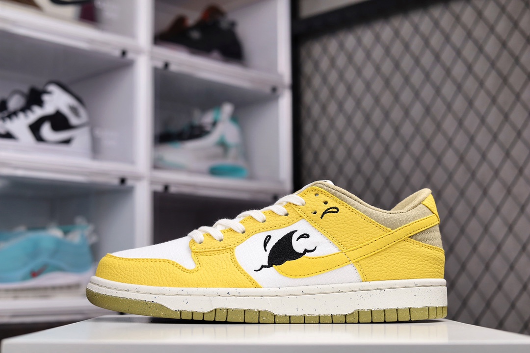Nike Nike SB Dunk Low H0 耐克/Nike Dunk Low SB 低帮滑板鞋/白黄 鲨鱼钩Nike Dunk Low ‘Sun Club’ Launching Summer 2022 这双鞋子整体采用白黄来搭配,黄色为主色调。 黄色部位用了皮革材质,但是白色部分用的却是 -种织布材料,这种搭配别有一番风味。 侧边的Swoosh大部分也是黄色但是这次把Nike 勾的头换成了黑色来点缀,给人乍一看像鲨鱼背 部的鱼鳍旁边还有-一些浪花我。鞋舌上绣了 “Nike Sun Culb”,鞋后跟这次却没有绣任何 字。鞋垫上用了八个Nike小勾围成了太阳的形 状直接点面主题“Sun Club”货号:DV1681- F5 BX尺码:36 -45