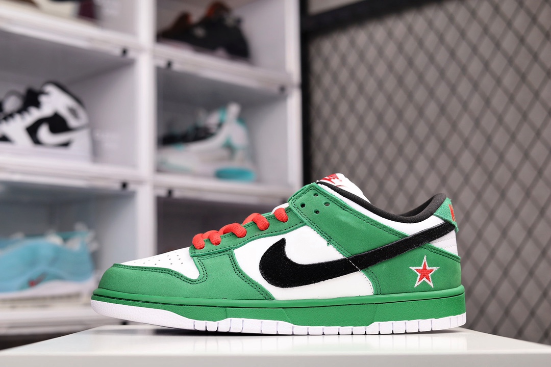 Nike Nike SB Dunk Low H0 公司级 Nike Dunk Low Pro SB “Heineken” 喜力配色喜力此鞋限于澳洲、美国及加拿大等地独家发售,盛传限产750对。很多人都被红,白,绿的巧妙搭配所吸引,而喜力和NIKE因为这双鞋成为了欢喜冤家的故事也被人津津乐道 货号:304292-302XQ尺码:36-47.5