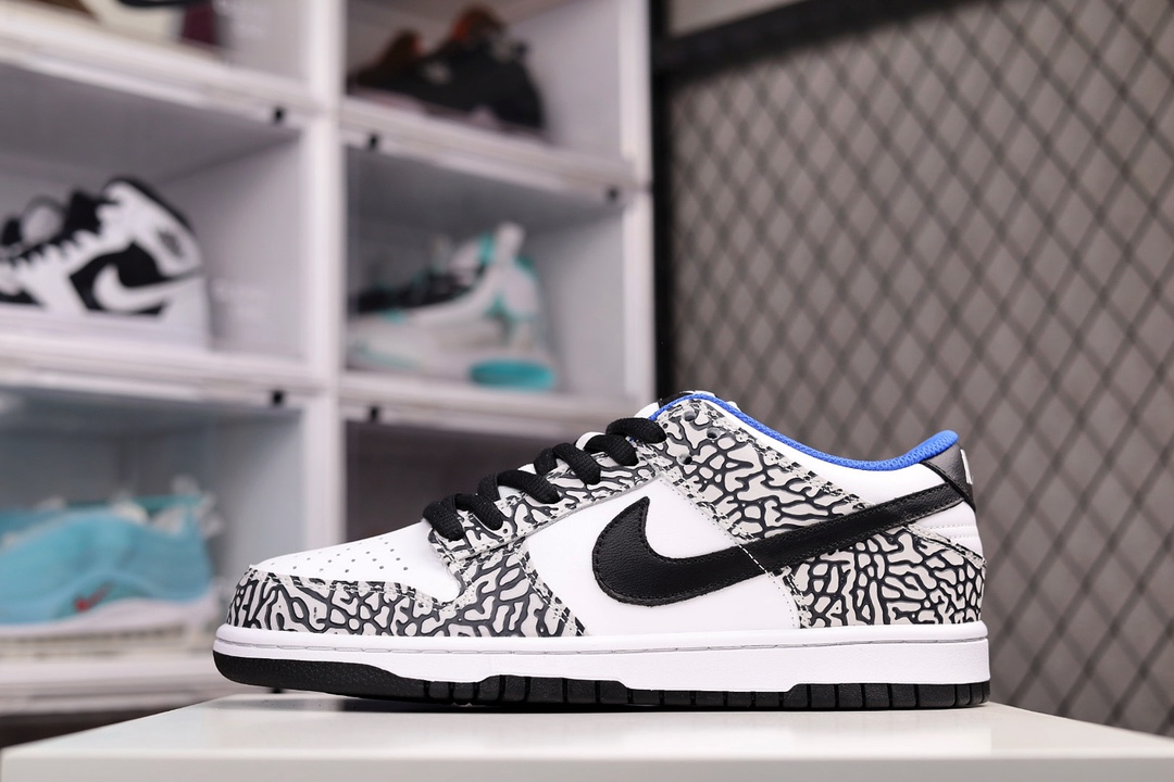 Nike Nike SB Dunk Low H5 Nike SB Dunk Low PRO”Elephant”扣篮系列低帮休闲运动滑板板鞋“白灰爆裂纹”从人气之作 Atmos x Air Max 1 “Elephant Print” 联名中汲取灵感,Nike 为当下话题性与关注度最高的鞋型 Nike SB Dunk Low 打造了全新的 “Elephant” 配色。可以看到这款配色预计采用黑白灰三色打造,鞋头部分以白色皮革打造,鞋身中部采用黑色皮革,水泥灰爆裂纹则从鞋头延伸至后跟,为整双鞋注入狂性与潮流气息。湖水蓝演绎的 Swoosh 则也是一大亮点,营造出强烈视觉冲击。货号:304295-001TL尺码:39-45(带半码)