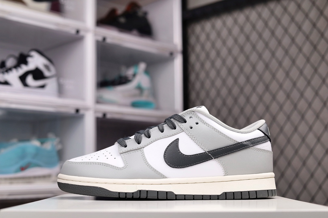 Nike Nike SB Dunk Low I0 Nike Dunk Low WMNS “Light Smoke Grey” 浅烟灰 该鞋款采用纯白皮质面料打造鞋面,搭配灰色框架点缀,这两个配色的组合算是让 Nike 玩明白了。鞋侧的 Swoosh 采用黑色打造,一直延伸至后跟 Nike 字样处,均采用黑色打造,使鞋款更具层次感货号:DD G0 3-117RC尺码:36 36.5 37.5 38 38.5 39 40 40.5 41 42 42.5 43 44 44.5 45 46